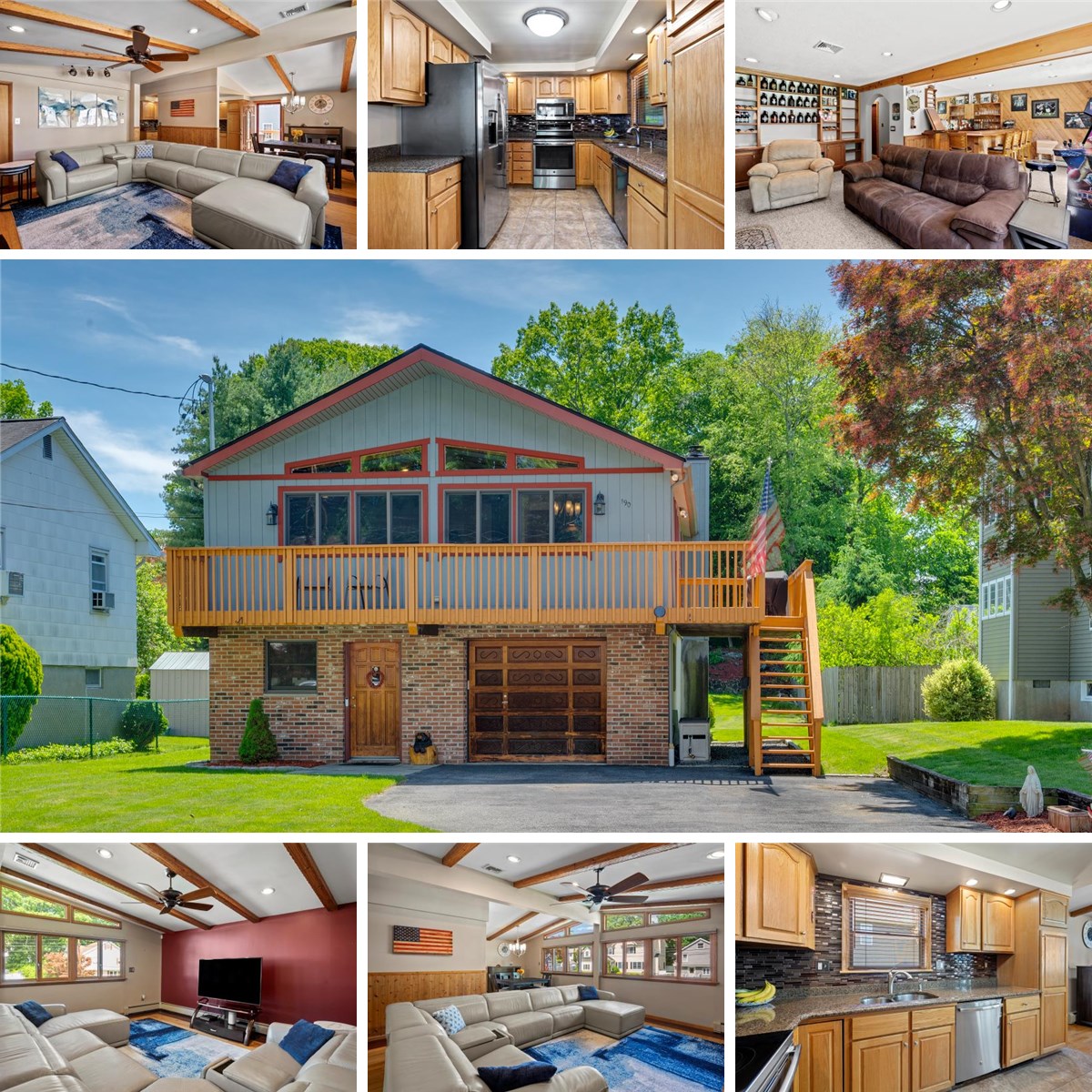 Just one look at this beautifully updated 3 bedroom, 2.5 bath bi-level ranch is all it will take to feel the warmth and comfort of home. Step inside to discover a welcoming lower level that combines comfort and functionality with a versatile space for a home office, powder room, laundry access, ample closets, and direct entry to the attached garage with workshop. Additionally, this level boasts a generously sized family room with wood-burning fireplace, wet bar, and built in shelving - perfect for relaxing or entertaining guests. The sliders open to a lush, level backyard creating a picturesque setting for outdoor gatherings and summer fun. Ascending via a custom-built cedar staircase with decorative railing, you'll reach the main level adorned with beautiful hardwood flooring throughout. The open concept layout seamlessly combines the living room and dining area, highlighted by soaring wood beamed ceilings and a wall of windows that floods the space with natural light. The gourmet kitchen features granite counters, stainless steel appliances, and abundant cabinetry creating an ideal space for culinary creations. A side door off the kitchen opens to a wrap around deck perfect for outdoor dining. To complete this level are the primary bedroom with en-suite bathroom, two additional spacious bedrooms and a full hall bath. Additional features include central air, Navien tankless combi-boiler (2022), ADT security system, front and backyard sprinklers. Enjoy a short stroll to village recreation with pool, tennis, playground & park and just minutes to Metro North. This home truly has it all - a perfect place to create cherished lifelong memories!